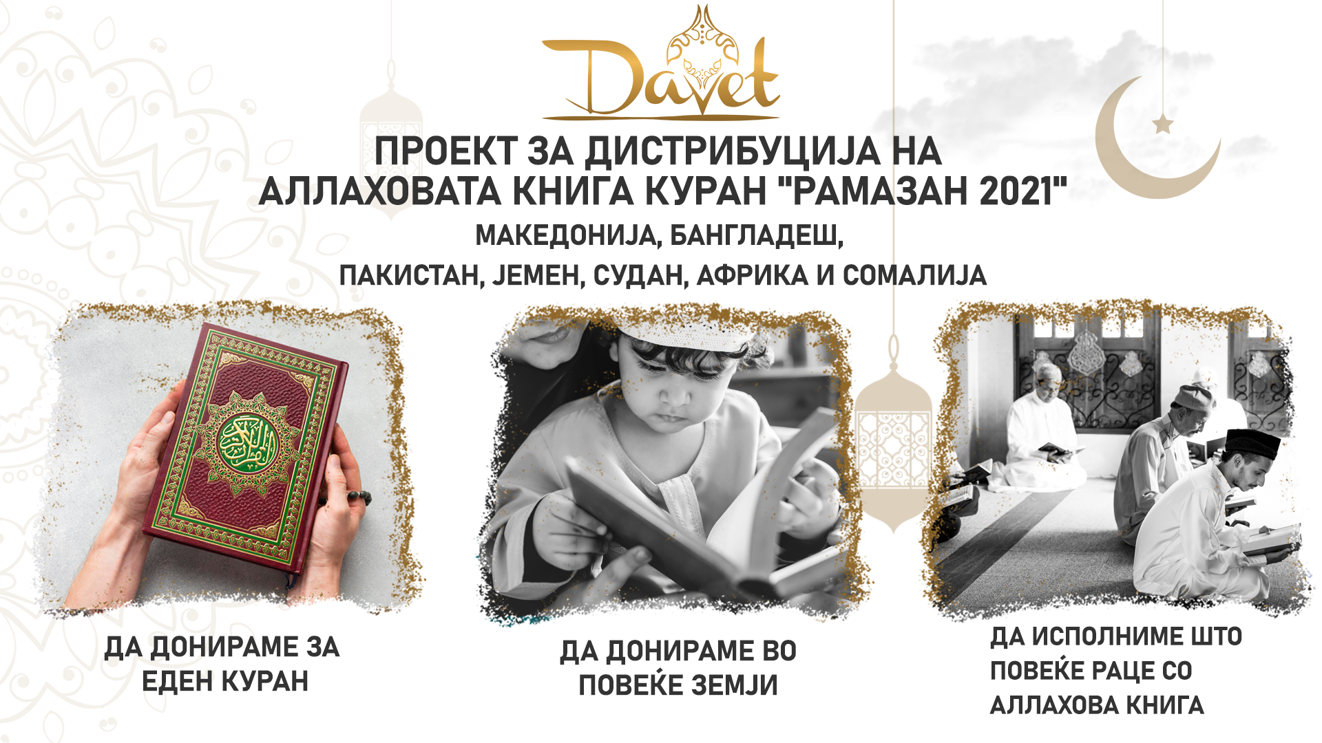 Be part of the DAVET team and help with your donations in the distribution of Mushaf, in our country and in countries in need, such as: Bangladesh, Pakistan, Yemen, Sudan, Africa and Somalia.
