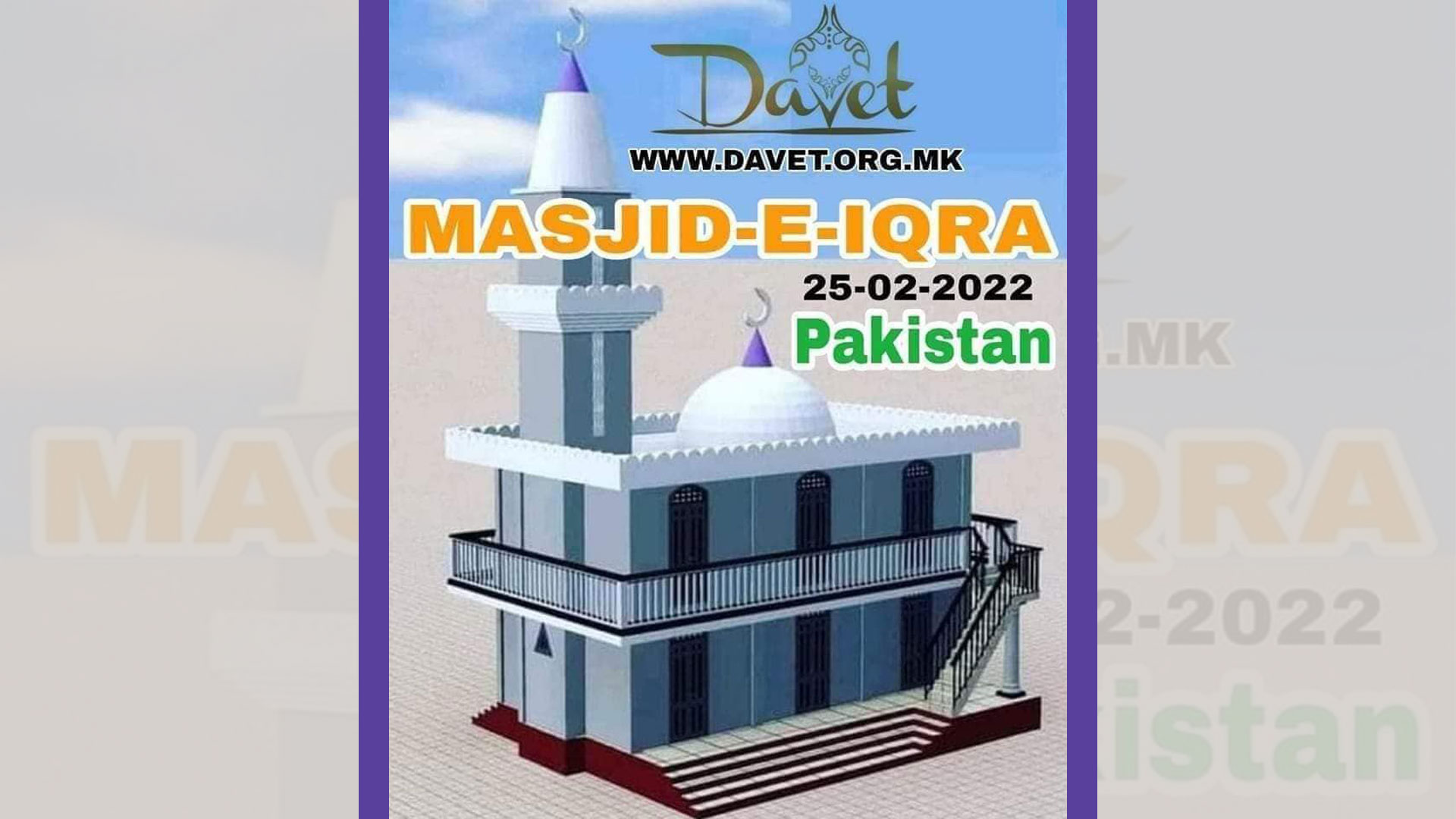INVESTMENT FOR PERMANENT SADAKA 👇 Construction of a new two level mosque in Pakistan. ➡️ Mosque 🕌 ➡️ Library 📚 ➡️ Center for education ➡️ There will be 5️⃣ goals ….. 👇 1️⃣ Five daily prayers, seven days a week. 2️⃣ Free study of the Qur’an by selected teachers – hafiz. 3️⃣ Use of the Library with all educational materials throughout the year, for all vulnerable categories. 4️⃣ Acquisition of general Islamic education with different contents and from different fields, for all interested men and women. 5️⃣ Awarding of prizes to people who showed special interest and results in the areas they studied. 👉 As always, we need your donation for this wonderful work of Allah from the category of: ➡️ Permanent Sadaqah – Sadakatul Jariya Allah (swt) tells us:,, The mosques of Allah are indeed built by those who believe in Allah and the Last Day, and who perform Salat, and who give Zakat, and who only fear Allah. Well, those are exactly the insiders! (At-Tawbah 18) 🖋 The Prophet, may God bless him and grant him peace, said: “Whoever builds a mosque in the name of Allah, Allah will build him a house in Paradise.” (Mutefekun alayhi)🖊 ➡️ TO DONATE💰 FROM THE HEART ❤ IBAN: FR7621833000010001278970754 PayPal: (miks_family@hotmail.com) 👇 Denar transaction account: Association of Citizens Davet 300-0000013221-46 Komercijalna Banka AD Skopje Purpose of remittance: Donation for Davet’s Projects 👇Currency account: Zdruzenie na citizens Davet IBAN Code MK07300701003584117 SWIFT KOBSMK2X Komercijalna Banka AD Skopje Ul. Hadzi Jovan Shishkov no. 57b 1000, Skopje North Macedonia If you do not have the opportunity to make a payment to our accounts, you can do the same through: 👉Western Union, – Moneygram, – Ria For more detailed information, please write to our private inbox or call the phone numbers, whatsapp, viber: 0038971 278 411; 00389 76 597 228 🌐 https://davet.org.mk 🖋 Administration of Davet